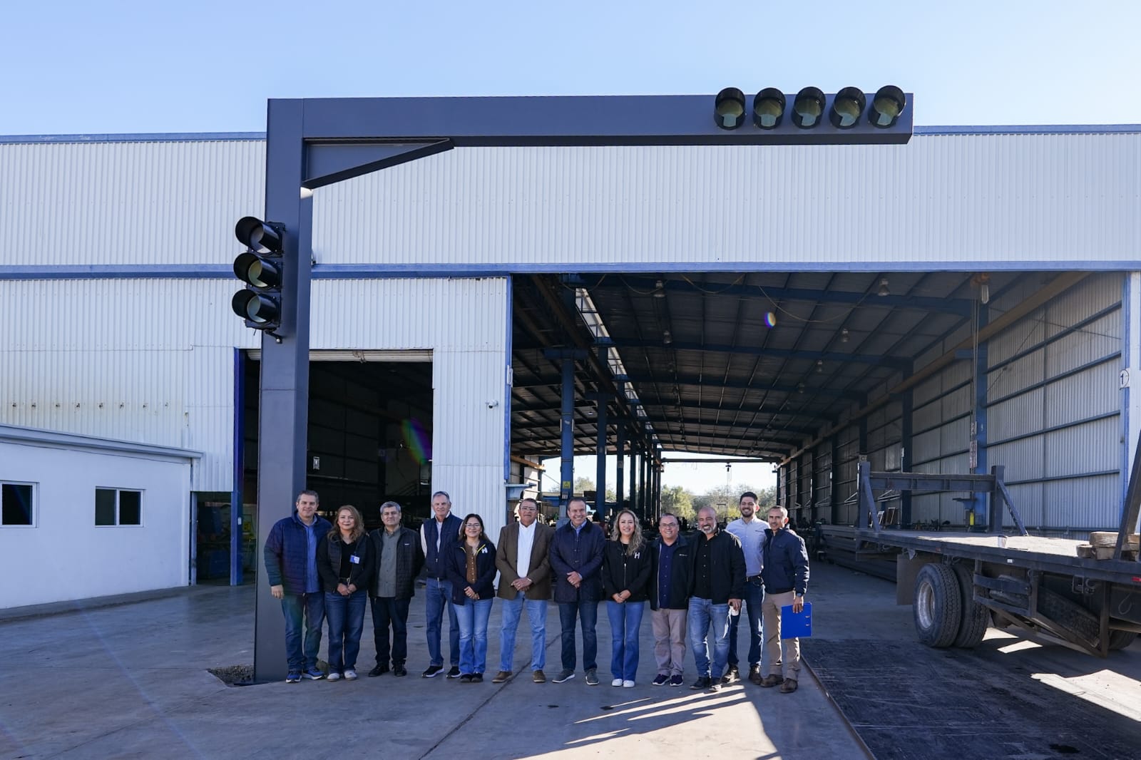 El presidente municipal, junto a servidores públicos municipales y el presidente del Colegio de Ingenieros Civiles del Estado de Sonora, Luar Petterson visitó las instalaciones de la empresa Petterson & Petterson donde se elaboran estos prototipos modernos que integrarán inteligencia, cámara, pantalla, estructura sólida y un sistema de respaldo para mantener su operación ante interrupciones eléctricas.