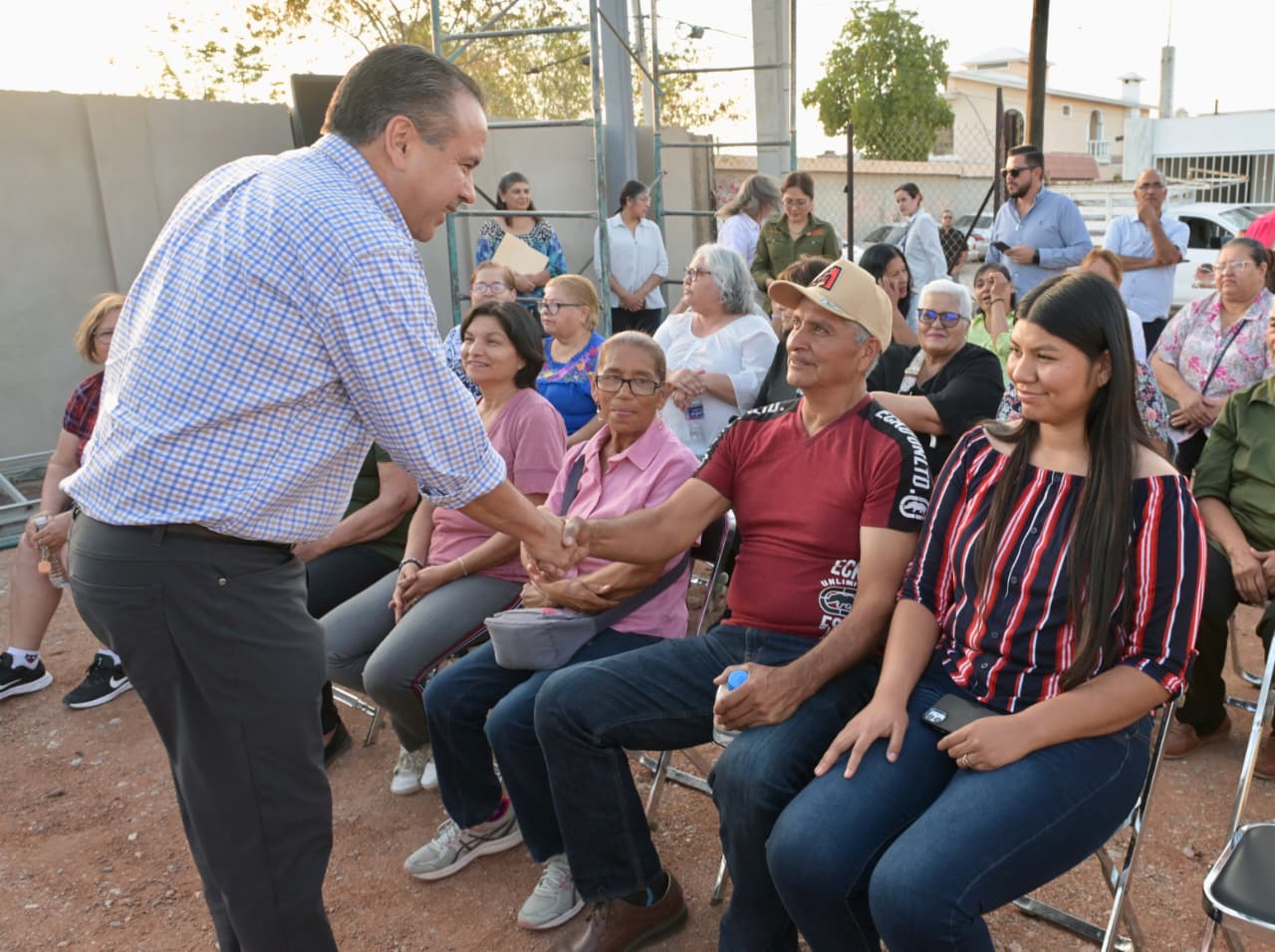Hermosillo, Sonora; 20 de abril, 2026.- Vecinas y vecinos de la colonia Mártires de Cananea lograron que mil 316 votos, del total de 2 mil 38 emitidos por obras de sector en la cuarta edición del Presupuesto CRECES, fueran a favor de su propuesta de mejorar las instalaciones del templo María Niña, por lo que invitaron al presidente municipal Antonio Astiazarán como testigo de su logro ciudadano.