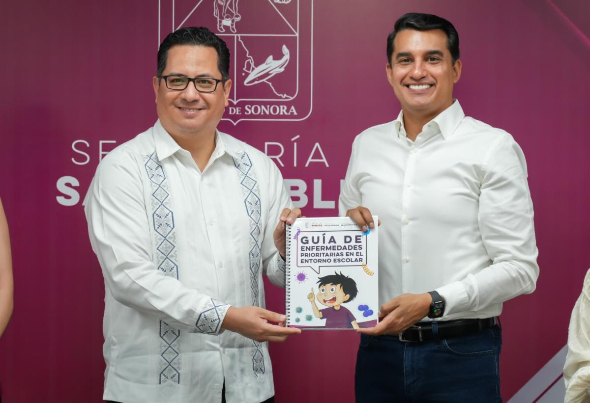 Hermosillo, Sonora; 15 de abril de 2026.– Con el objetivo de fortalecer la detección oportuna y prevención de enfermedades infecciosas en el entorno escolar, el Gobierno de Sonora, a través de la Secretaría de Salud Pública (SSP), realizó la entrega de la Guía de Enfermedades Prioritarias en el Entorno Escolar, a la Secretaría de Educación y Cultura (SEC).